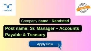 Randstad New Job : Apply for the post of Sr. Manager – Accounts Payable & Treasury