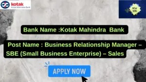 Kotak Mahindra Bank New Job : Apply for the post of Business Relationship Manager – SBE (Small Business Enterprise) – Sales