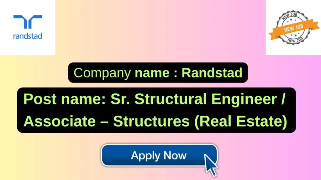 randstad released notification for the position of Sr. Structural Engineer / Associate – Structures (Real Estate) at Bangalore, Karnataka. APPLY ONLINE