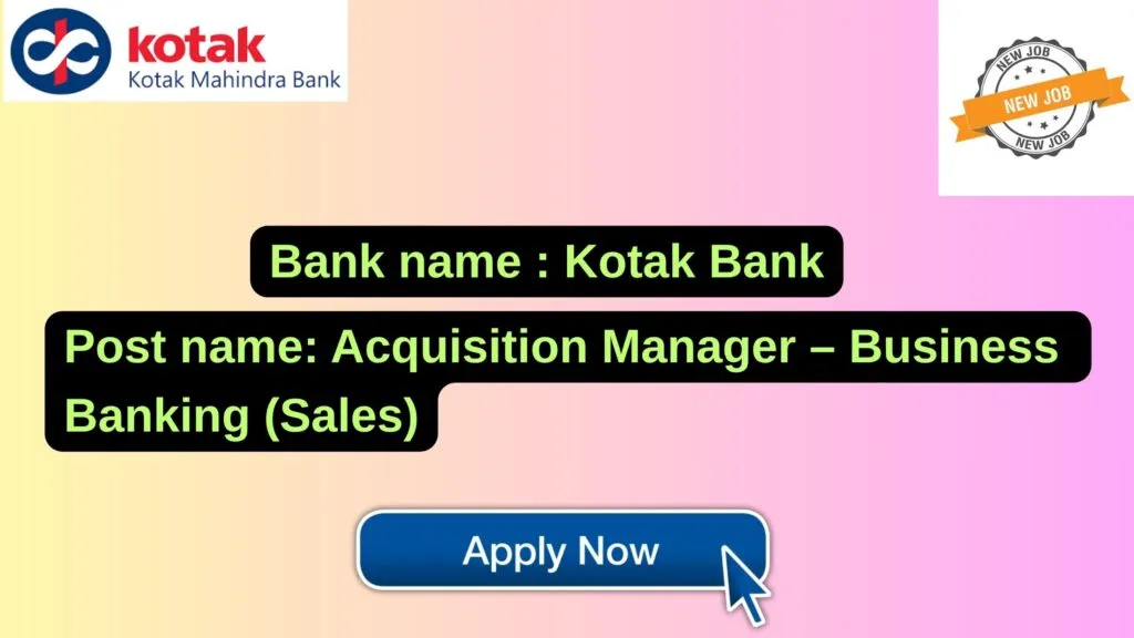 Kotak Mahindra Bank released notification for the Acquisition Manager – Business Banking (Sales) at Mumbai, Maharashtra, India. APPLY ONLINE
