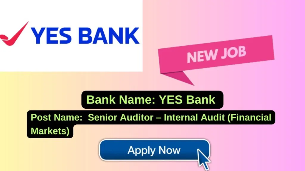 Yes Bank released notification for the post of Senior Auditor – Internal Audit (Financial Markets); YES BANK House, Santacruz Office, Mumbai (Work From Office). APPLY ONLINE!!
