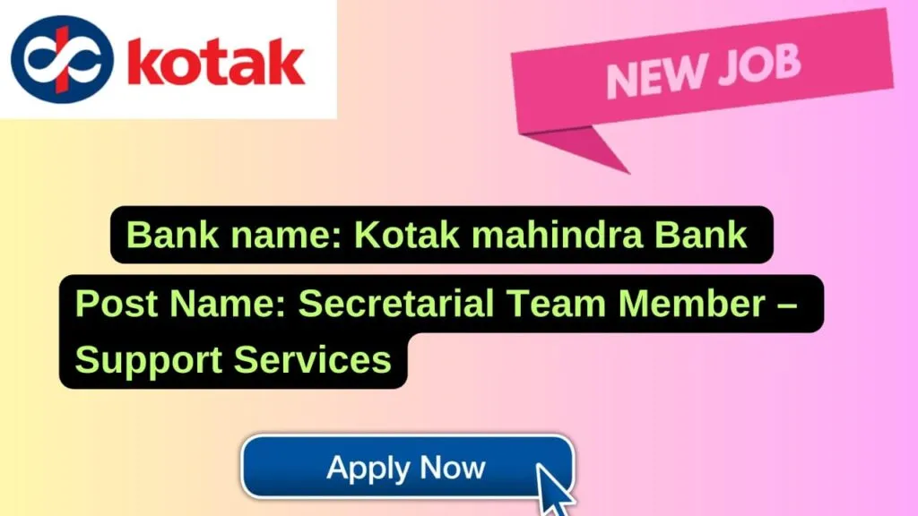 Kotak Mahindra Bank released notification for the post of Secretarial Team Member – Support Services at Kotak Infiniti, Building No. 21, Mumbai, Maharashtra – 400097, India. APPLY ONLINE