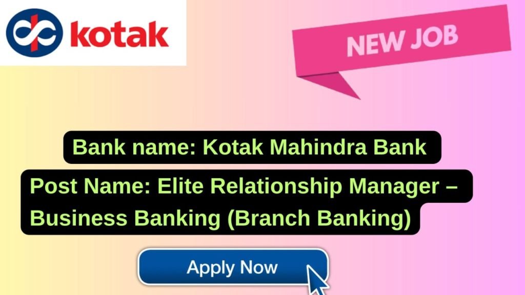 Kotak Mahindra bank new job : Apply for the post of Elite Relationship Manager – Business Banking (Branch Banking)