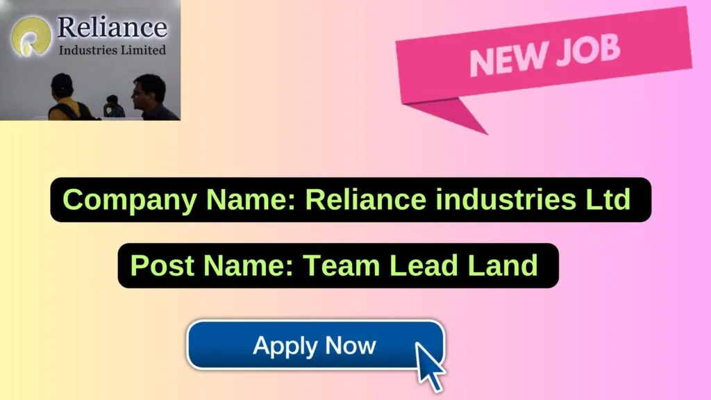Reliance industries Ltd released notification for the post of Team Lead Land at Gurgaon. APPLY ONLINE!!