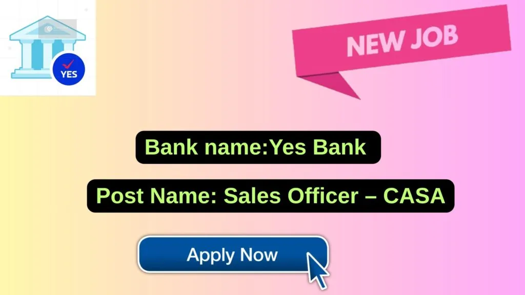 Yes bank released notification for the post of Sales Officer – CASA at South Bopal, Ahmedabad (Work From Office). APPLY ONLINE!!