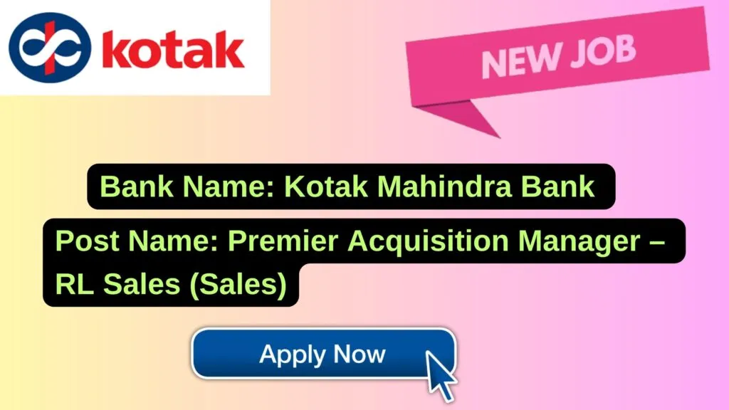 Kotak Mahindra Bank released notification for tha post of Premier Acquisition Manager – RL Sales (Sales) at Mumbai, Maharashtra, India. APPLY ONLINE