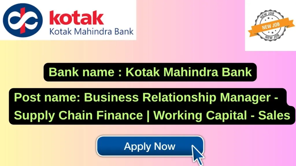 Kotak Mahindra Bank released notification for the position of Business Relationship Manager – Supply Chain Finance | Working Capital – Sales at Chennai, Tamil Nadu, India. APPLY ONLINE
