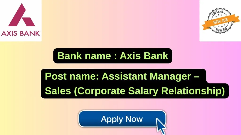 Axis Bank New Job : Apply for the post of Assistant Manager – Sales (Corporate Salary Relationship)