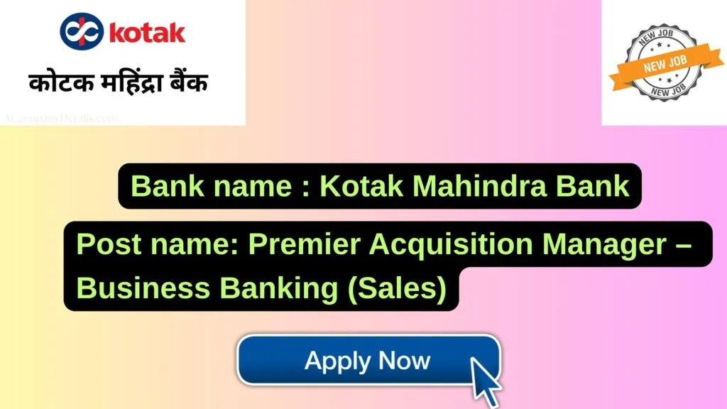 Kotak Mahindra Bank released notification for the position of Premier Acquisition Manager – Business Banking (Sales) at Pune, Maharashtra, India. APPLY ONLINE