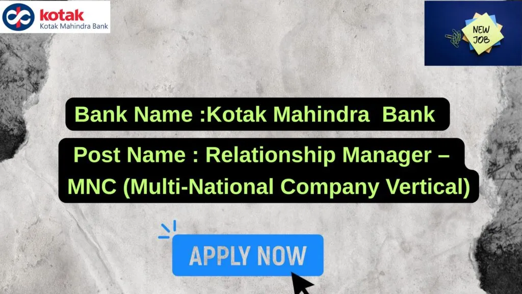 Kotak Mahindra Bank New Job : Apply for the post of Relationship Manager – MNC (Multi-National Company Vertical)