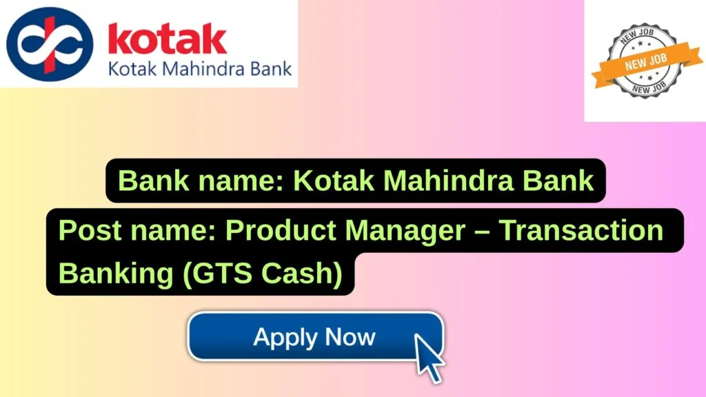 Kotak Mahindra Bank released notification for the position of Product Manager – Transaction Banking (GTS Cash) at Mumbai, Maharashtra, India. APPLY ONLINE