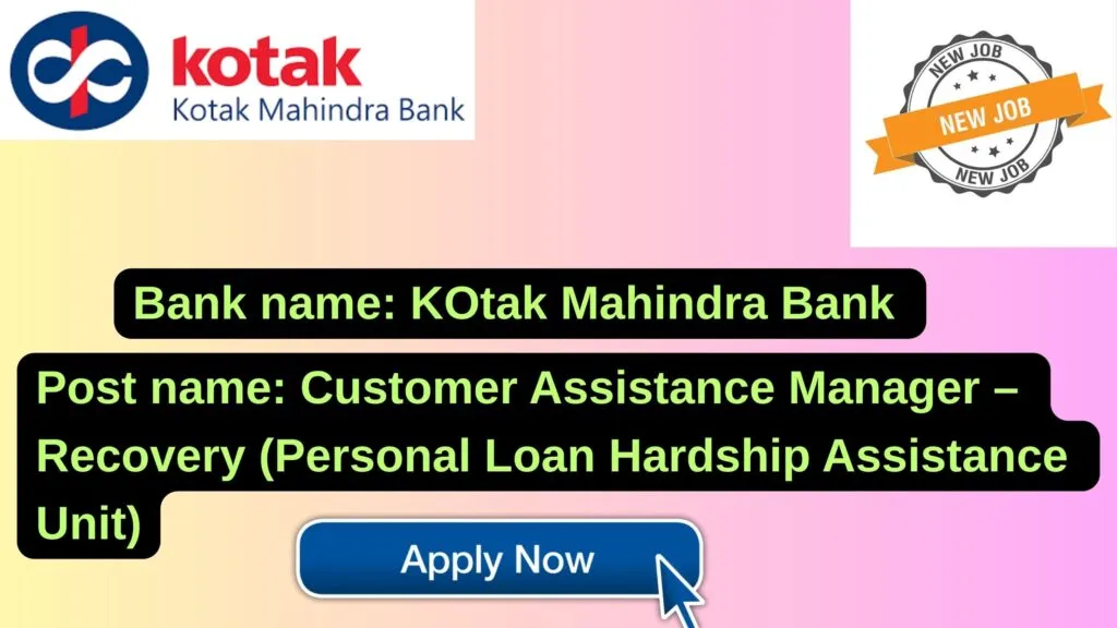 Kotak Mahindra Bank released notification for the position of Customer Assistance Manager – Recovery (Personal Loan Hardship Assistance Unit) at Bangalore, Karnataka, India. APPLY ONLINE