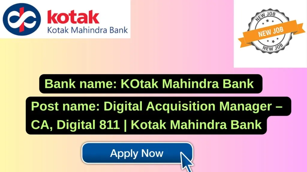 Kotak Mahindra Bank released notification for the Digital Acquisition Manager – CA, Digital 811 | Kotak Mahindra Bank at Ahmedabad, Gujarat, India. APPLY ONLINE