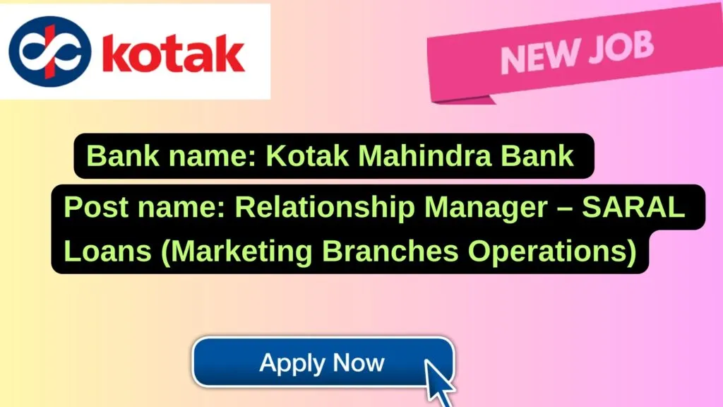 Kotak Mahindra Bank released notification for the Relationship Manager – SARAL Loans (Marketing Branches Operations) at Agra, Uttar Pradesh, India. APPLY ONLINE