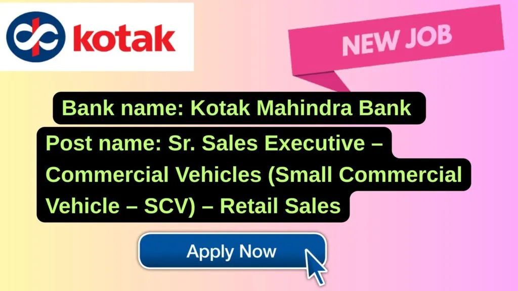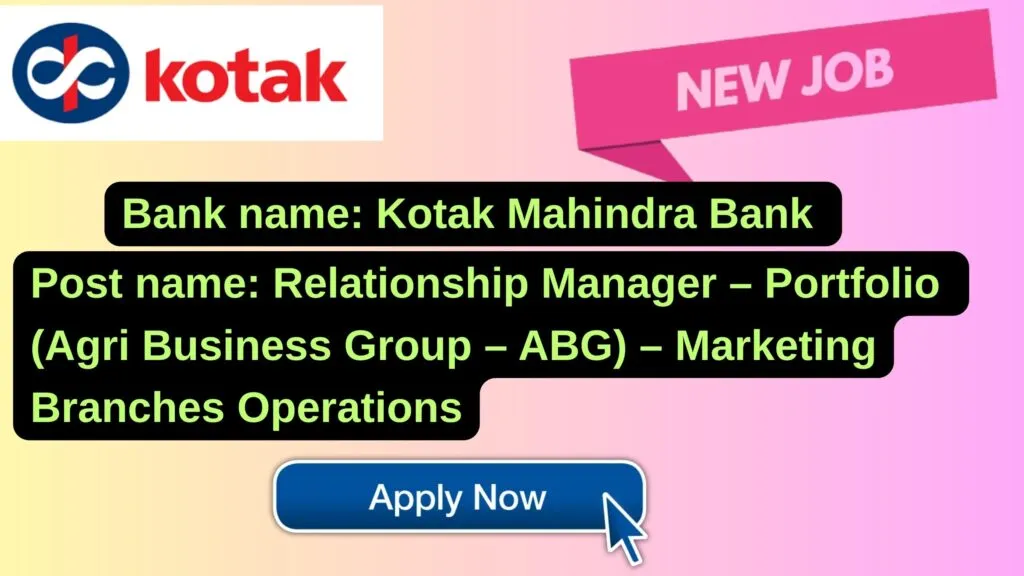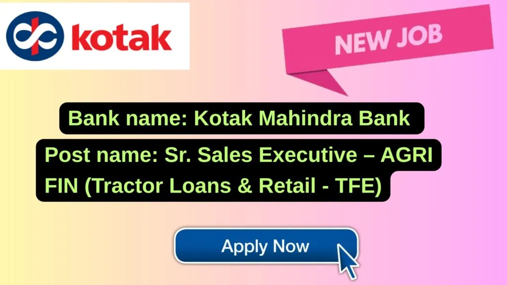 Kotak Mahindra Bank New Job : Apply for the post of Team Collections Manager – AGRI-FIN Tractor Loans & Retail (TFE) – Recovery Branch