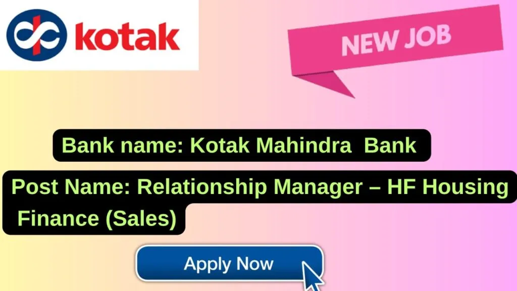 Kotak Mahindra Bank New Job : Apply for the post of Relationship Manager – HF Housing Finance (Sales)