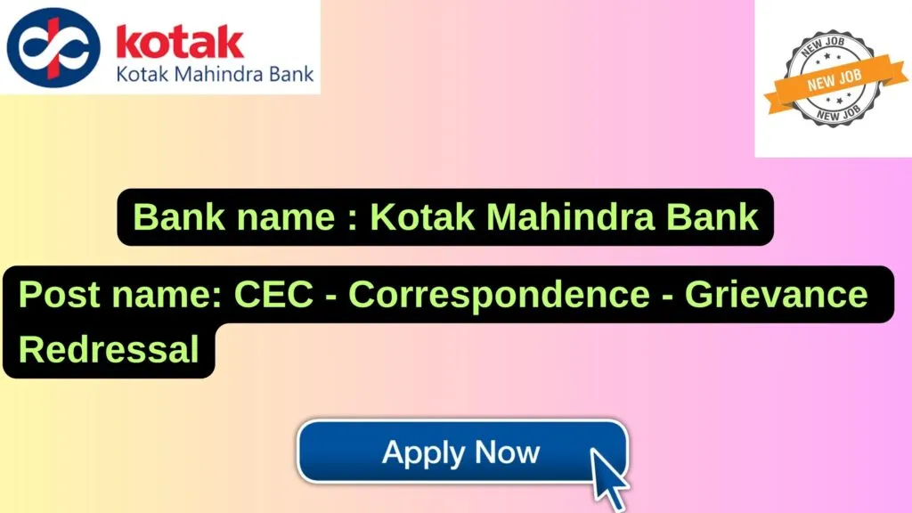 Kotak Mahindra Bank released notification for the position of CEC – Correspondence – Grievance Redressal at Neptune Elements, 3rd Floor, Thane, Maharashtra, 400604, India. APPLY ONLINE