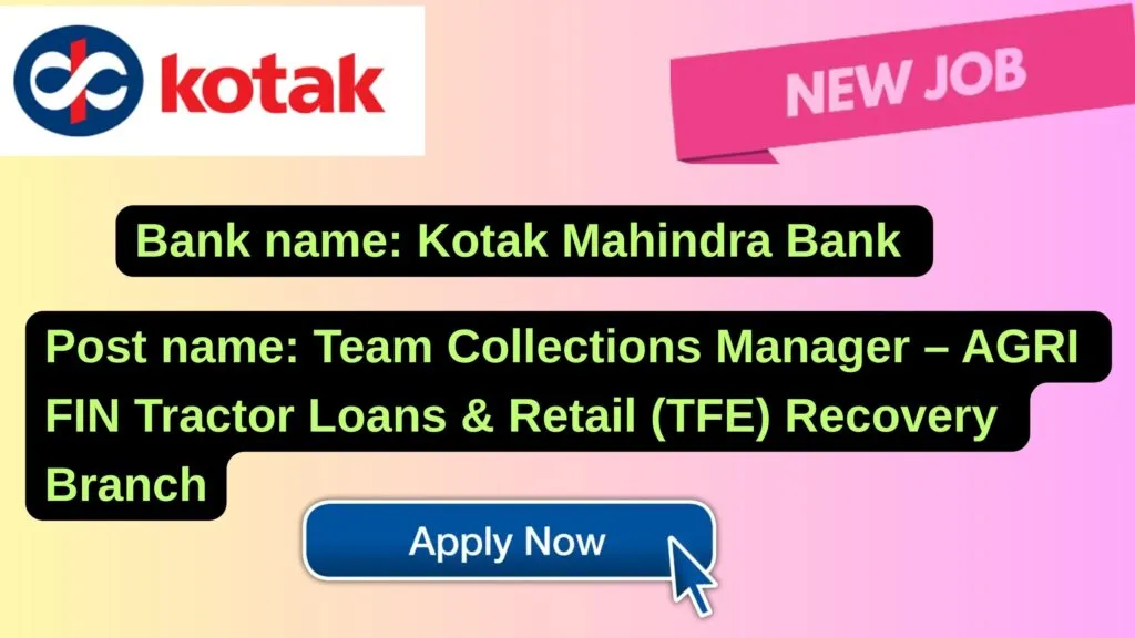 Kotak Mahindra Bank released notification for the post of Team Collections Manager – AGRI-FIN Tractor Loans & Retail (TFE) – Recovery Branch at Shp No. B4, B5, B6, B7 & B8, Ground Floor, Kolhapur, Maharashtra, 416001, India. APPLY ONLINE