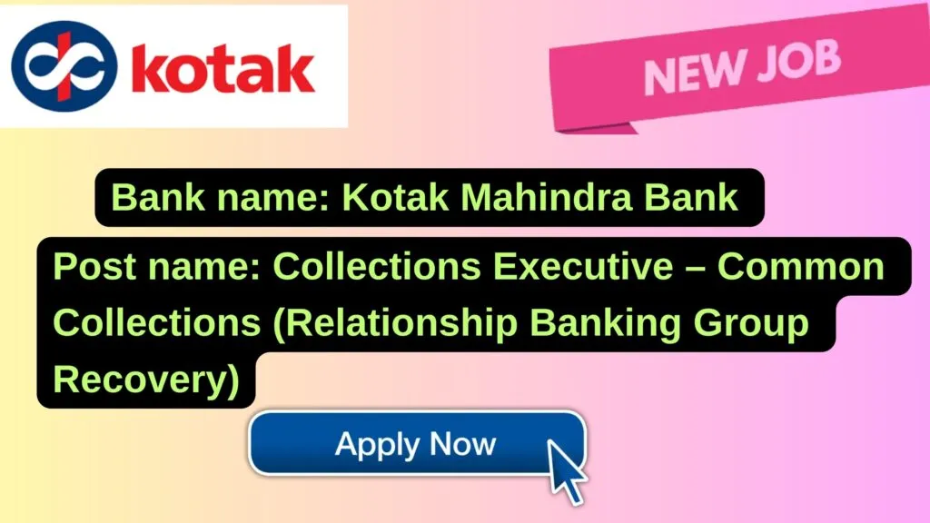 Kotak Mahindra Bank released notification for the post of Collections Executive – Common Collections (Relationship Banking Group – Recovery) at 22 Kotak House, Bangalore, Karnataka, 560001, India. APPLY ONLINE
