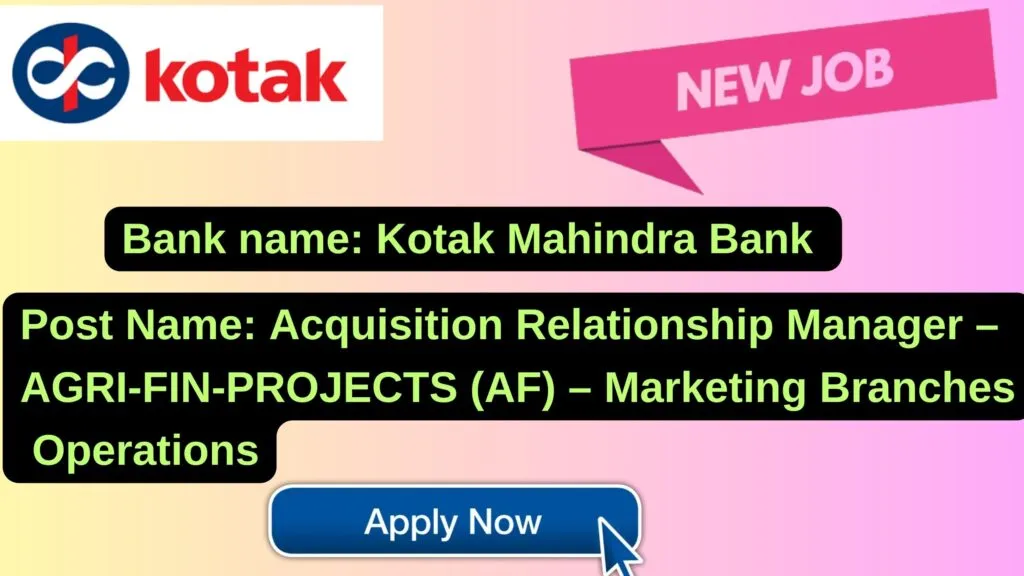Kotak Mahindra Bank released notification for the post of Acquisition Relationship Manager – AGRI-FIN-PROJECTS (AF) – Marketing Branches Operations at Jaipur, Rajasthan, India. APPLY ONLINE