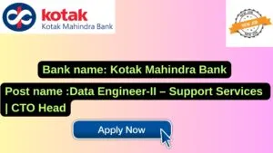 Kotak Mahindra Bank New Job : Apply for the post of Data Engineer-II – Support Services | CTO Head