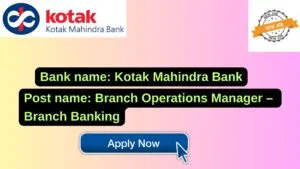 Kotak Mahindra Bank New Job : Apply for the post of Branch Operations Manager – Branch Banking