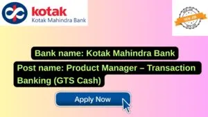 Kotak Mahindra Bank New Job : Apply for the post of Product Manager – Transaction Banking (GTS Cash)