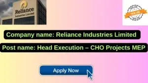 Reliance Industries Limited new job : Apply for the post of Head Execution – CHO Projects MEP