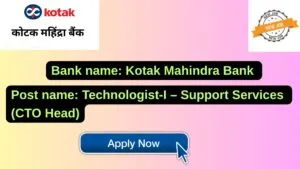 Kotak Mahindra Bank New Job : Apply for the post of Technologist-I – Support Services (CTO Head)