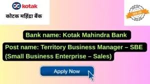 Kotak Mahindra Bank New Job : Apply for the post of Territory Business Manager – SBE (Small Business Enterprise – Sales)