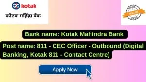 Kotak Mahindra Bank New Job : Apply for the post of 811 – CEC Officer – Outbound (Digital Banking, Kotak 811 – Contact Centre)