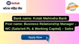 Kotak Mahindra Bank New Job : Apply for the post of Business Relationship Manager – WC (Salaried PL & Working Capital) – Sales