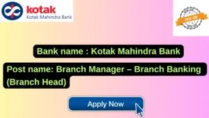 Kotak Mahindra Bank New Job : Apply for the post of Branch Manager – Branch Banking (Branch Head)