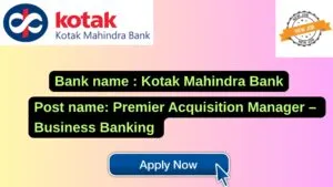 Kotak Mahindra Bank New Job : Apply for the post of Premier Acquisition Manager – Business Banking