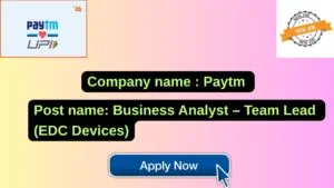 Paytm New Job : Apply for the post of Business Analyst – Team Lead (EDC Devices)