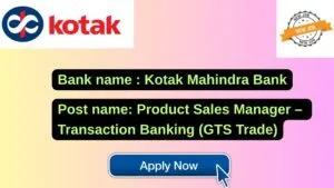 Kotak Mahindra Bank New Job : Apply for the post of Product Sales Manager – Transaction Banking (GTS Trade)