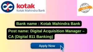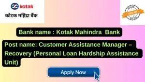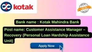 Kotak Mahindra Bank New Job : Apply for the post of Customer Assistance Manager – Recovery (Personal Loan Hardship Assistance Unit)
