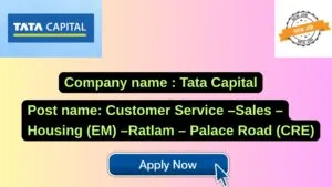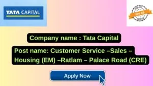 Tata Capital New Job : Apply for the post of Customer Service –Sales –Housing (EM) –Ratlam – Palace Road (CRE)