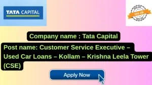 Tata Capital New Job : Apply for the post of Customer Service Executive – Used Car Loans – Kollam – Krishna Leela Tower (CSE)