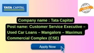 Tata Capital New Job : Apply for the post of Customer Service Executive – Used Car Loans – Mangalore – Maximus Commercial Complex (CSE)
