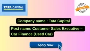 Tata Capital New Job : Apply for the post of Customer Sales Executive – Car Finance (Used Car)
