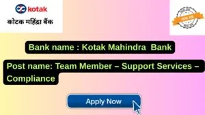 Kotak Mahindra Bank New Job : Apply for the post of Team Member – Compliance (Support Services – Compliance)