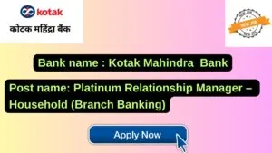 Kotak Mahindra Bank New Job : Apply for the post of Platinum Relationship Manager – Household (Branch Banking)