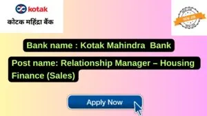 Kotak Mahindra Bank New Job : Apply for the post of Relationship Manager – Housing Finance (Sales)