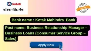 Kotak Mahindra Bank New Job : Apply for the post of Business Relationship Manager – Business Loans (Consumer Service Group – Sales)