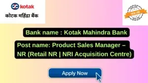 Kotak Mahindra Bank New Job : Apply for the post of Product Sales Manager – NR (Retail NR | NRI Acquisition Centre)
