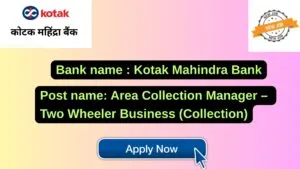 Kotak Mahindra Bank New Job : Apply for the post of Area Collection Manager – Two Wheeler Business (Collection)