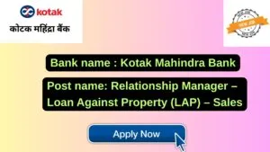 Kotak Mahindra Bank New Job : Apply for the post of Relationship Manager – Loan Against Property (LAP) – Sales