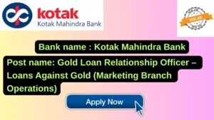 Kotak Mahindra Bank New Job : Apply for the post of Gold Loan Relationship Officer – Loans Against Gold (Marketing Branch Operations)