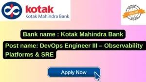 Kotak Mahindra Bank New Job : Apply for the post of DevOps Engineer III – Observability Platforms & SRE